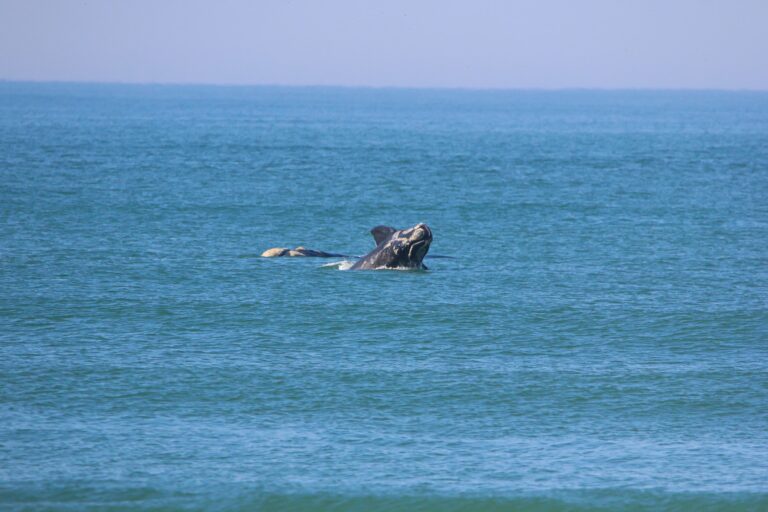 Fotógrafo registra mãe e filhote de baleia-franca em momento único em Tramandaí