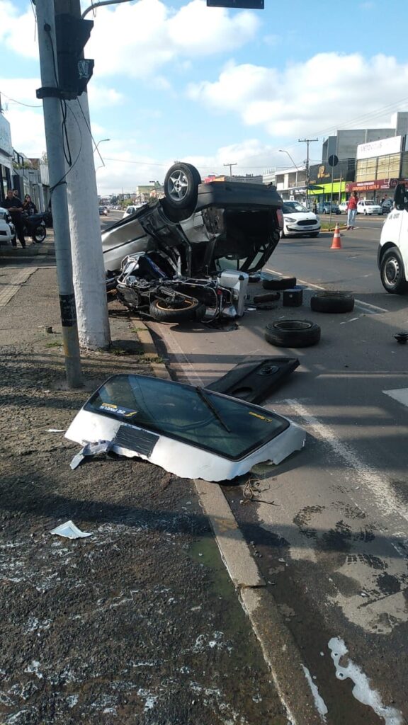 Veículo capotou após colisão com moto na avenida Dorival; motociclista foi encaminhado ao hospital